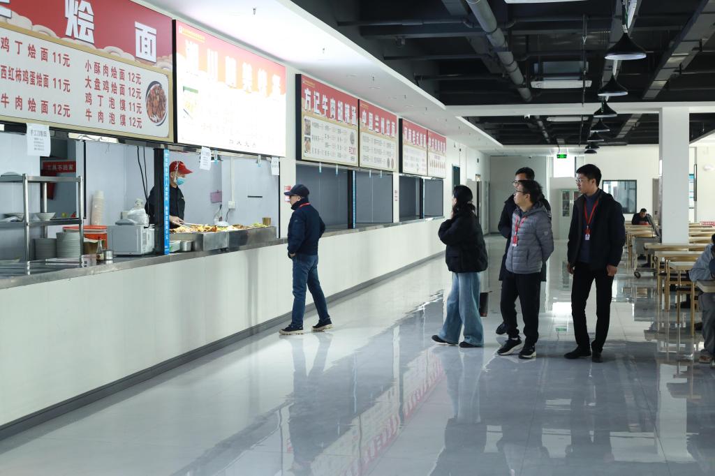 他们先后到电商直播实训室、教学机房等场所,查看员工实践学习情况,了解课程进度,查看了机房设备运行情况;随后到员工超市、食堂等生活区域,查看落实员工前期反馈的问题,并进行安全排查。吴琼艳提出,要始终把员工安全放在首位,完善基地后勤服务体系,为实践教学提供坚实保障。