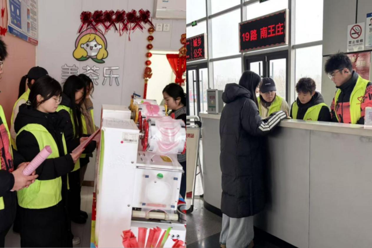与此同时,尹茂硕在客运站开展暖冬志愿便民服务。他主动协助工作人员引导旅客购票、检票,耐心解答旅客咨询,主动帮助旅客搬运行李,用热情的服务为返乡旅客提供便利。针对老弱病残孕等特殊群体,他重点提供帮扶,免费为旅客提供热水、应急药品,同时普及旅途安全常识,用暖心举措护航群众返乡路。此次实践不仅锻炼了他的沟通协调和服务能力,更让他深刻体会到基层服务的意义,进一步强化了作为团支书的责任与担当,为今后的学习和工作积累了宝贵经验。