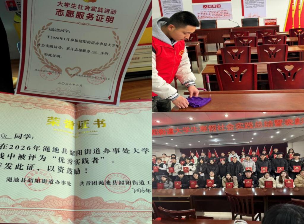 刘毅欣是电子商务三班的员工,同时担任班级班长一职。寒假期间,他主动投身老员工返家乡社会实践,前往河南省三门峡市渑池县街道办事处,以社区工作者的身份参与基层服务,在实践中锤炼本领、服务群众,用实际行动践行青年责任。